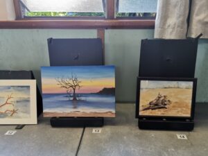 On 14th October 2023, roughly 70 fellow artists met at the North Coast Artists (NCA) club. There were 18 submissions within the “painting” category and members were invited to place a single vote for their overall favourite submission. The theme for that monthly meeting was “A driftwood beach”.