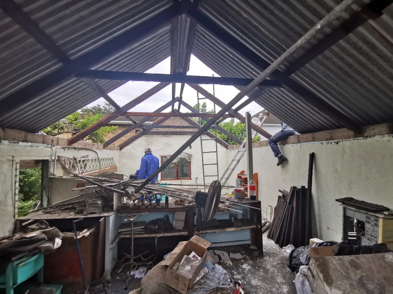 There was an old derelict building which had a really rotten roof, in fact, I used to live in that room some 18 years ago. With some recent high winds the roof was badly damaged and needed to be replaced.